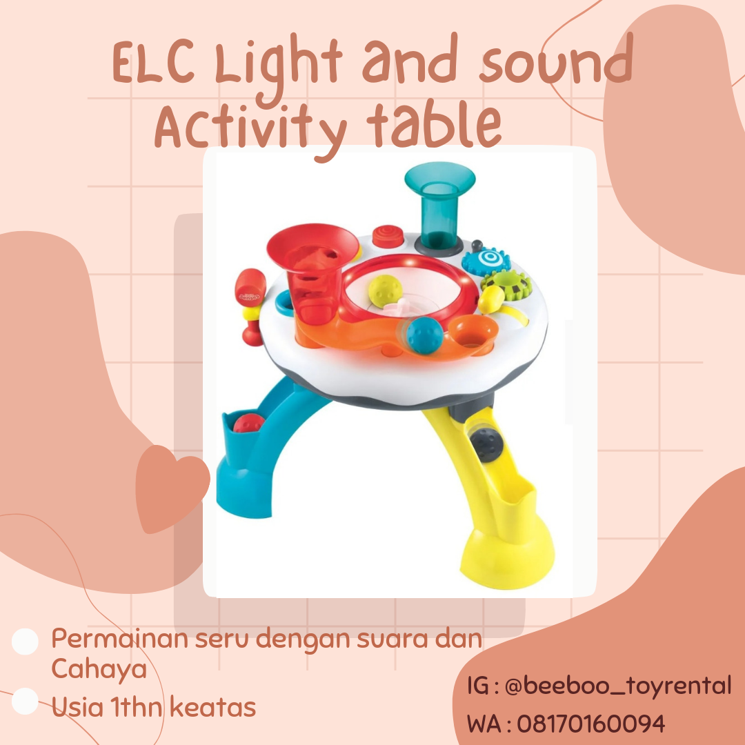 ELC Lights and Sound Activity Table adalah mainan warna-warni yang memiliki sejumlah kegiatan menyenangkan untuk si kecil. Si kecil akan menyukai kegiatan memutar kenop, menekan-nekan, dan menonton 5 bola meluncur. Kami menyukainya karena mengeluarkan suara lucu dan lampu-lampu berkedip.