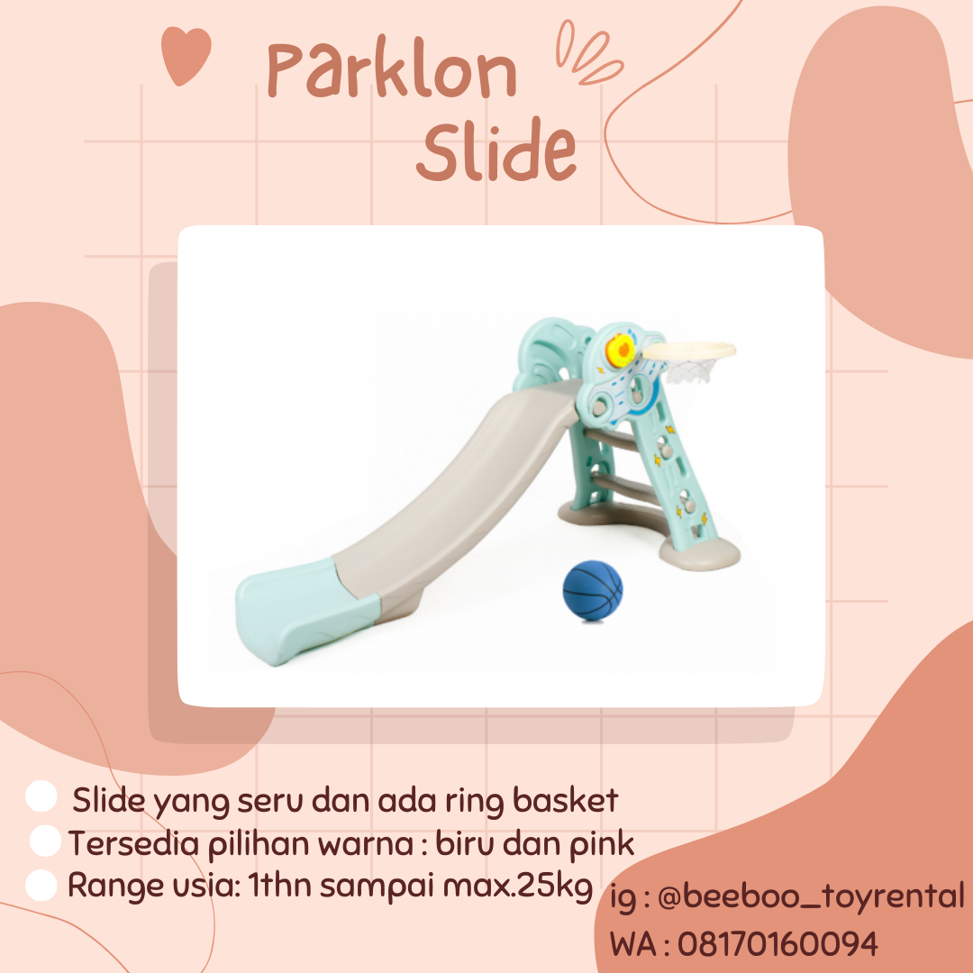 Parklon Folding Slide perosotan lucu dengan ring basket. Material dari plastik aman bebas racun. Perosotan tidak terlalu tinggi juga tidak terlalu pendek cocok untuk anak-anak kecil. Parklon Slide dapat digunakan diluar ataupun didalam ruangan. Dapat dilipat jika tidak digunakan.