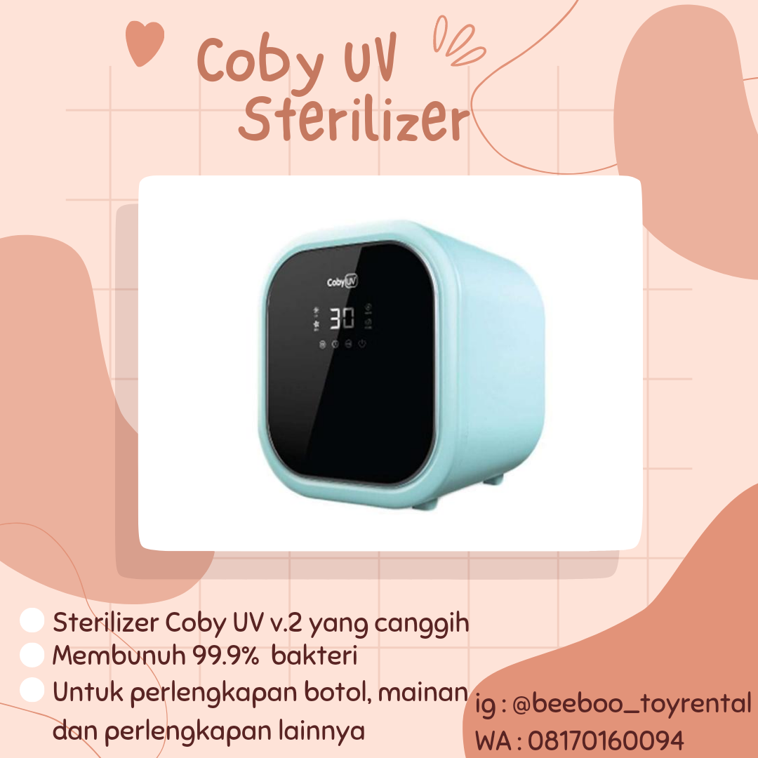 Coby Haus Coby UV Sterilizer yang merupakan alat sterilisasi canggih dari Coby Haus. Sterilizer ini dapat digunakan untuk menjaga kebersihan perlengkapan si kecil yang dapat membunuh bakteri hingga 99,9% pada botol susu, dot, mainan, atau perlengkapan lainnya setelah dicuci. Alat dengan Energy Saving ini dibuat aman dan bebas dari zat kimia.